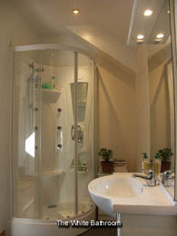 The White Bedroom: a bright and airy room, with parquet floor, large double bed, en suite W. C./shower room with multi-jet shower, towels, shampoo and shower gel provided. DVD player. Wi-fi internet access. The White Room Annexe. The room adoining the White Room, with one double and one single bed, suitable for children or friends who don't mind sharing the bathroom situated in the White Room.